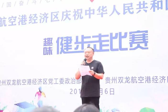 活动进行第五项刘峥嵘书记致辞并宣布比赛开始。刘书记说:“自从双龙港经济区建立以来我们已经基本实现了航空港经济区的初次创业。航空港经济区短短五年发生的变化,历历在目。当前,经济区奏响了“不忘初心、牢记使命、二次创业、感恩奋进”的工作主旋律和发展最强音。今天的趣味健步走活动,希望大家能够在紧张工作之余积极投身到全民健身行列中。同时希望把体育运动中“团结”、“拼搏”的精神带到日常工作中,激发大家同心协力、艰苦奋斗,以更加强健的体魄、更加饱满的热情投入经济区“二次创业”的工作中。”