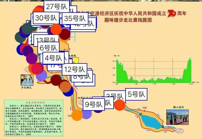 接下来就是比赛环节了,此次比赛赛程总计4.7KM,途中共有4个打卡任务点,分别是: